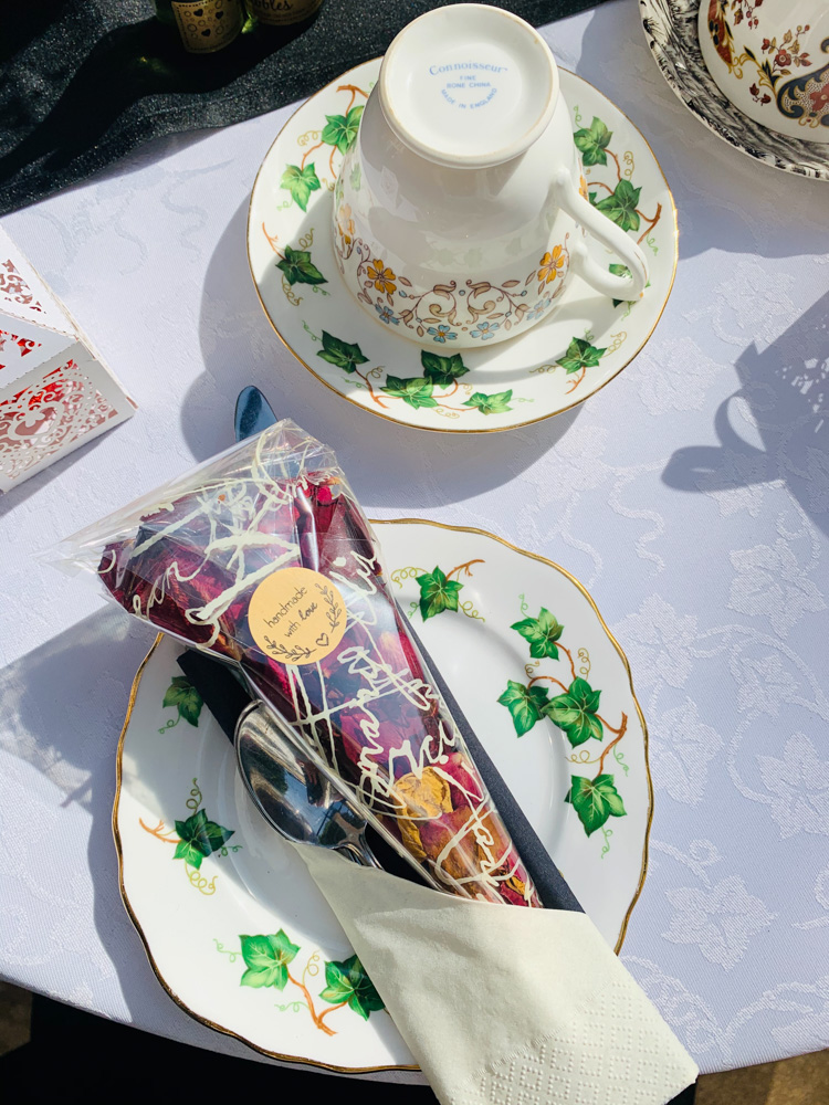 Once all the guests were settled and ready, we were able to serve the food, with the grooms choosing a mix of Gillian’s famous afternoon teas along with the delicious ploughman’s platter. With smiles all round we left our guests to enjoy their food ensuring all tea and coffee was topped up when needed. To finish off their celebrations our happy couple came into the Waldron suite for the cutting of the cake which of course could not be complete without the confetti cannons to shower the guests in colour.