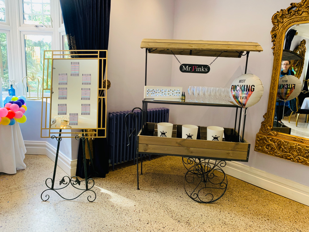 At Grimscote Manor we were honoured to be asked to host “Mr pinks” wedding, they are the owners of the dry cleaners and balloon shop on Coleshill high Street. We work alongside all year during different functions as they provide our backdrops and individual balloons for our events.