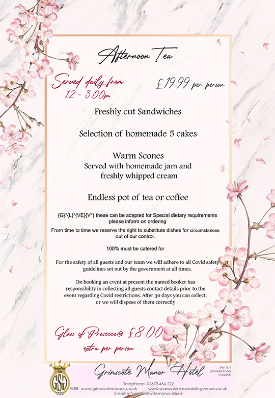 Served Daily from 12-3pm Freshly cut Sandwiches Selection of homemade [...]